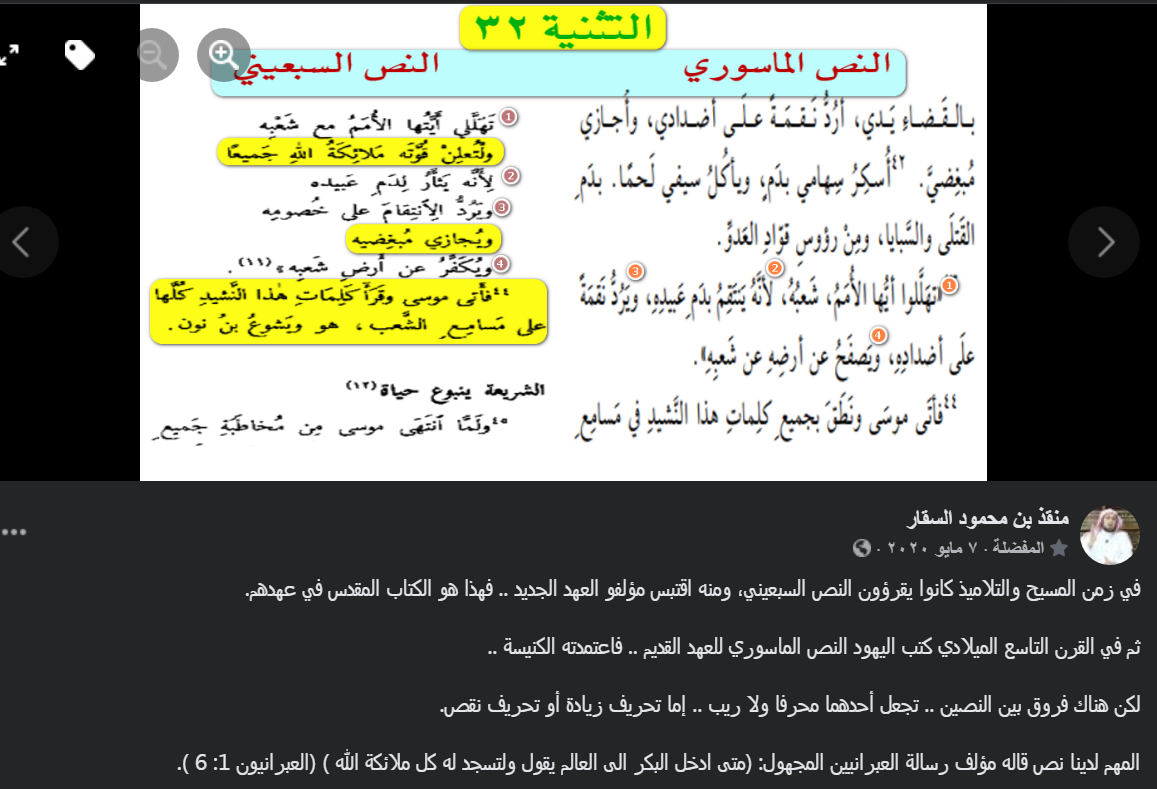 "هذا من سفر التثنية 34 المنسوب لموسى في توراة موسى"
